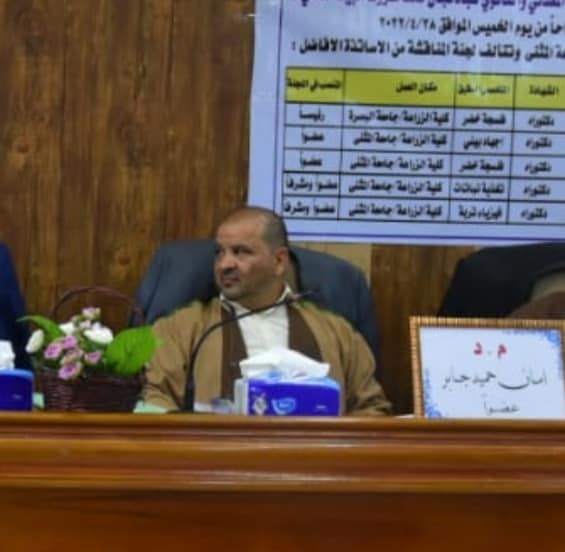 M. Dr. Aman Hamid Jaber..Faculty of Agriculture, University of Al-Muthanna, member