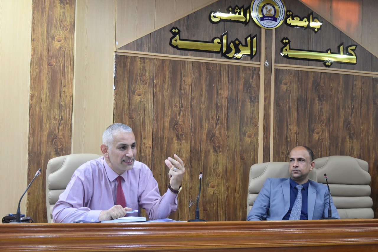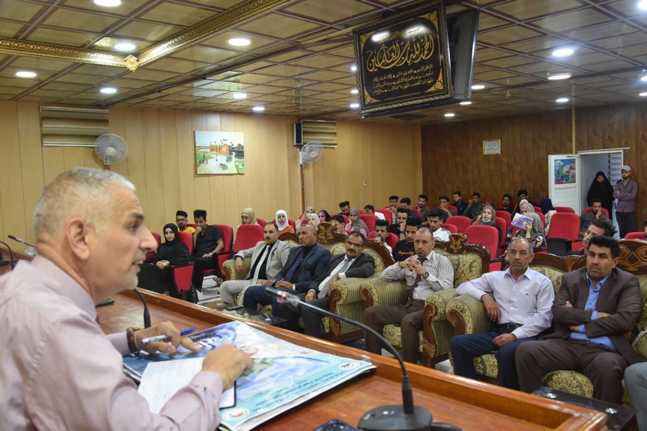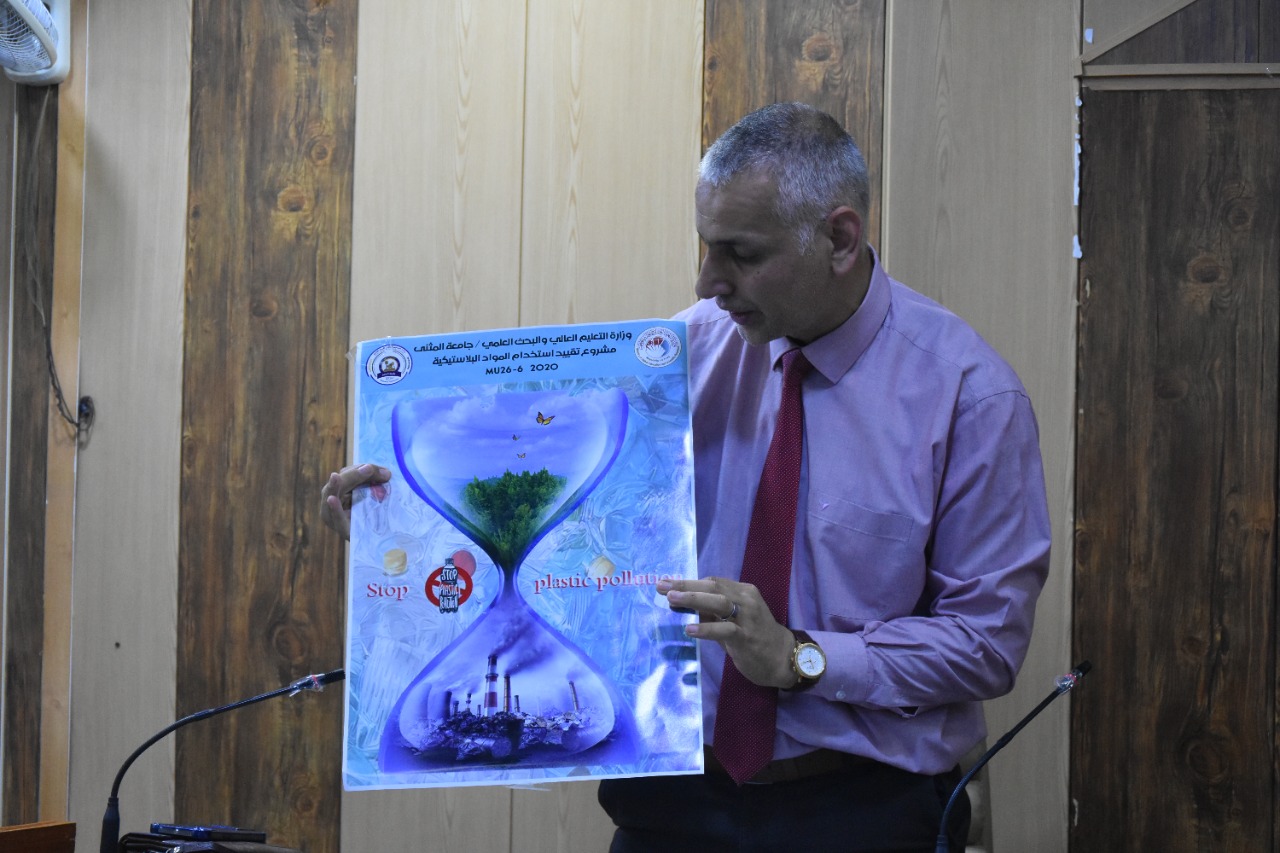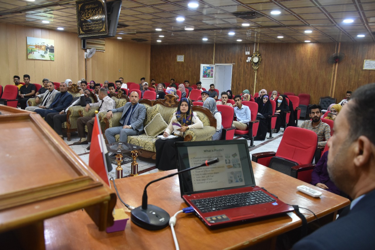 05/09/2022Under the slogan of investing clean energy towards sustainable development..and for a pollution-free environment..it was held this morning, Monday, 9/5/2022, at Jaber bin Hayyan Hall in the College of Agriculture, University of Al-Muthanna. A workshop entitled (Restricting the Use of Plastic Materials) moderated by the Chairman of the Committee on Restricting the Use of Plastic Materials at the university, Prof. Dr. Ahmed Abdel-Aali Rashid and Prof. Dr. Ali Rahim, the representative of the committee at the College of Agriculture, delivered by a member of the mentioned committee, Prof. Rahim Alwan Haloul A lecture in which he touched on important aspects in limiting the use and finding alternatives, and also reviewed the positive aspects of this topic on public health and the environment… in the presence of professors and students of the college.