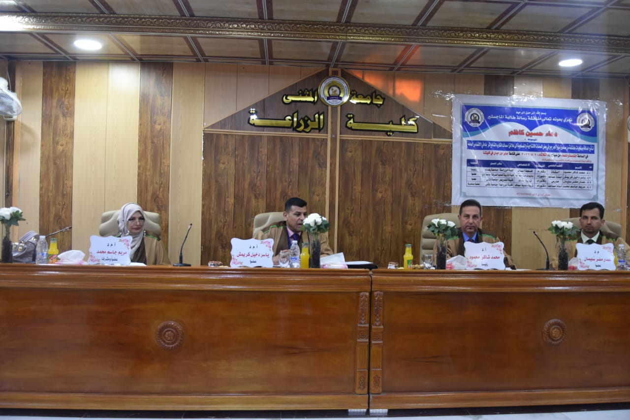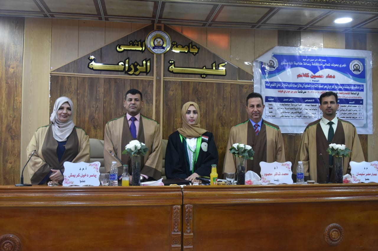 05/12/2022This morning, Tuesday 10/5/2022, in Jaber bin Hayyan Hall in the College of Agriculture, University of Al-Muthanna, a discussion took place on the thesis of the master’s student (Dua Hussein Kazem) Department of Animal Production and tagged (the effect of adding different levels of watercress seed powder on some productive and physiological traits to the The diets of common carp fish reared in existing cages) .. After a thorough and extensive discussion, the thesis was approved and with a very good grade… Congratulations to the student, her supervisor, and the members of the discussion committee.
