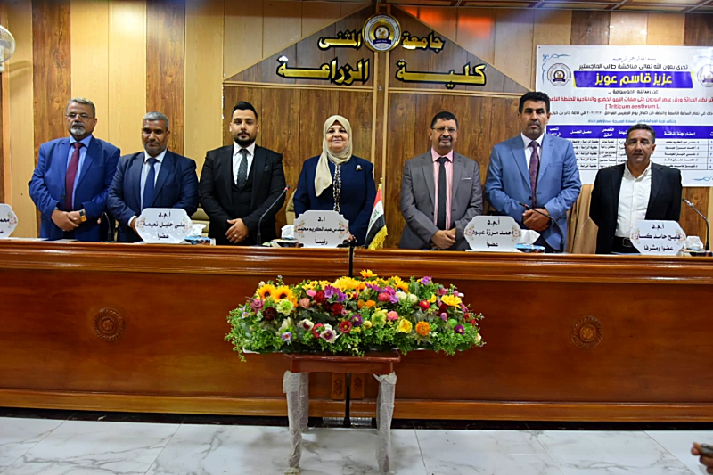 جرت صباح هذا اليوم الخميس الموافق 2023/3/30 مناقشة علمية علنية على قاعة جابر بن حيان في كلية الزراعة /جامعة المثنى لطالب الماجستير (عزيز قاسم عويز الحنوش ) والموسومة(تأثير نظم الحراثة ورش البورون في صفات النمو والحاصل للحنطة الناعمة)