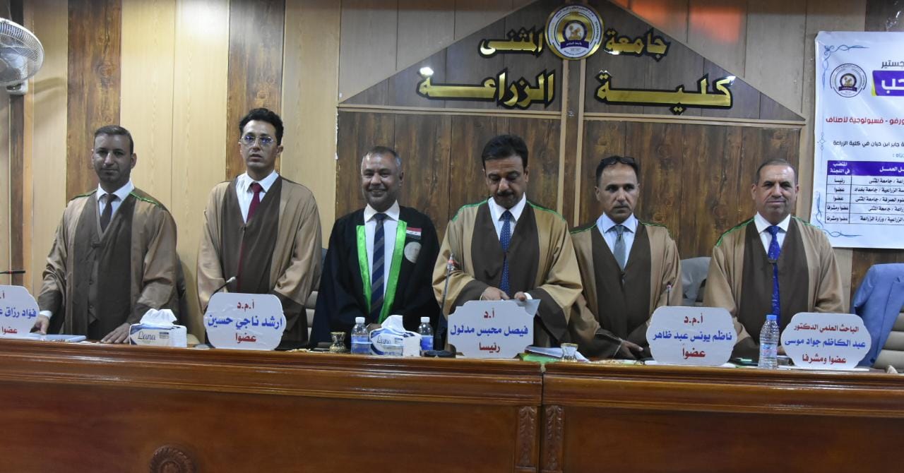 ناقشت كلية الزراعة- جامعة المثنى صباح اليوم الإثنين الموافق التاسع والعشرون من آيار رسالة ماجستير للطالب يحيى عبد الامير صاحب العذاري في قسم علوم المحاصيل الحقلية، والموسومة (دراسة التعبير الجيني بتقنية Real time- PCR وبعض المؤشرات المورفو- فسيولوجية لأصنافٍ عدة من الرز العراقي بدلالة الإجهاد المائي).