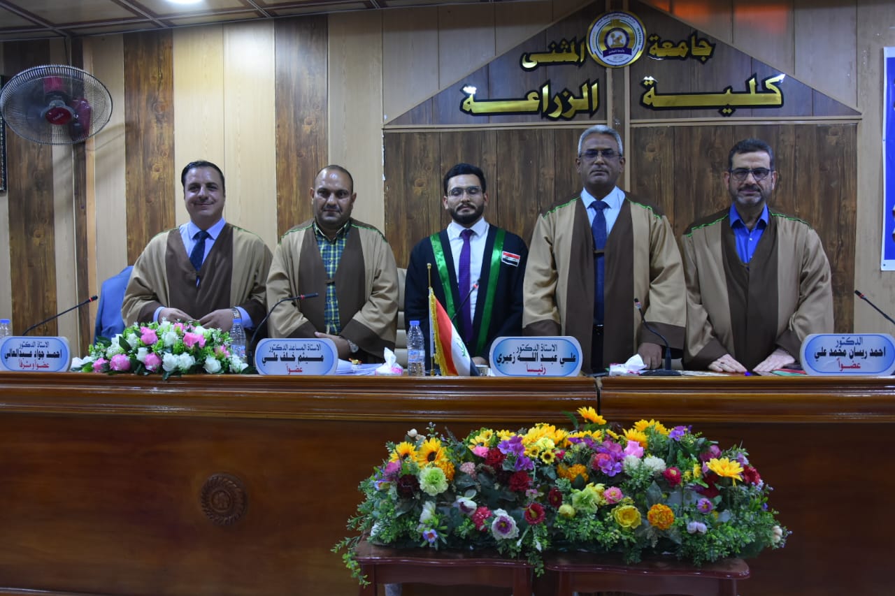 كلية الزراعة تناقش رسالة ماجستير للطالب حيدر عبد الحليم مجهول في قسم الانتاج الحيواني والموسومة،( دراسة تأثير العمر والوزن والموسم والبيئة في مستوى التغيرات الهرمونية والمعايير الإنتاجية والفسلجية والنسيجية وتطور الاعضاء التناسلية في جدار الماعز المحلي)