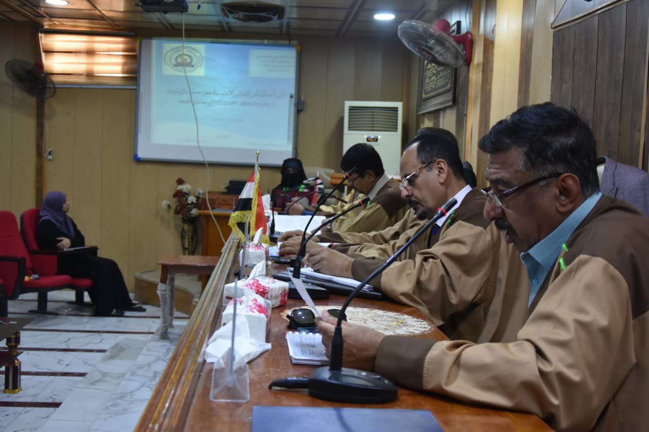 مناقشة علنية لرسالة طالبة الماجستير شمس يوسف علي في قسم المحاصيل الحقلية