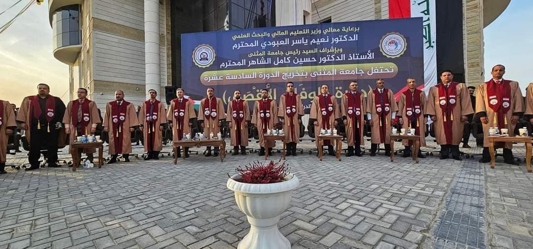 جامعة المثنى تقيم حفل تخرج الدورة السادسة عشر ( دورة طوفان الأقصى). اليوم الموافق ٢٥ تشرين الثاني.