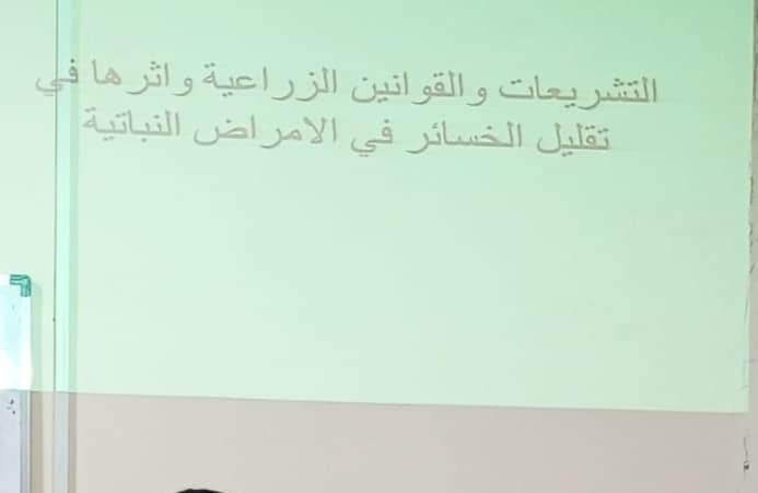 ضمن الخطة العلمية لقسم وقاية النبات وللعام الدراسي ٢٠٢٣ – ٢٠٢٤ م اقام القسم ندوة علمية بعنوان ( التشريعات والقوانين الزراعية وإثارها في تقليل الخسائر من الاصابات بالافات الزراعية) حاضر فيها مجموعة من الأساتذة كل من ( أ. م. د. سعد مانع عناد و أ. م. د. علي فرج جبير وا. م. د. محمود ثامر عبد) حيث تضمنت الندوة التعريف بأهم القوانين والتشريعات التي تحد من انتشار الآفات الزراعية الدخيلة إلى البلد من خلال تفعيل اهم هذه القوانين وهو قانون الحجر الزراعي وبجميع أنواعه الحجر الزراعي المحلي والدولي والاجراءات التنظيمية التي من خلال يمكن الحد من نشر هذه الآفات الزراعية وتقليل الخسائر الاقتصادية وتطرقت الندوة الى انتشار افات دخيلة وجديدة في محافظات عديدة من بلدنا مثل حشرة سوسة النخيل الحمراء وسبل المعالجة التي تتبعها الوزارات المعنية في التخلص منها….