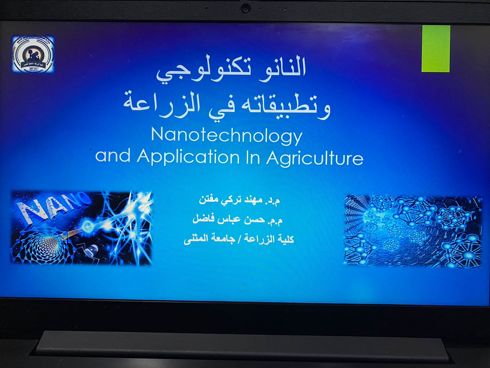 اقام قسم علوم التربة والموارد المائية في كلية الزراعة /جامعة المثنى ورشة عمل بعنوان ( النانو تكنولوجي وتطبيقاته في الزراعة ) وقد ادارة الورشة م.د مهند تركي مفتن و م.م حسن عباس فاضل وحضر الورشة اساتذة الكلية وطلبة الدراسات العليا .
