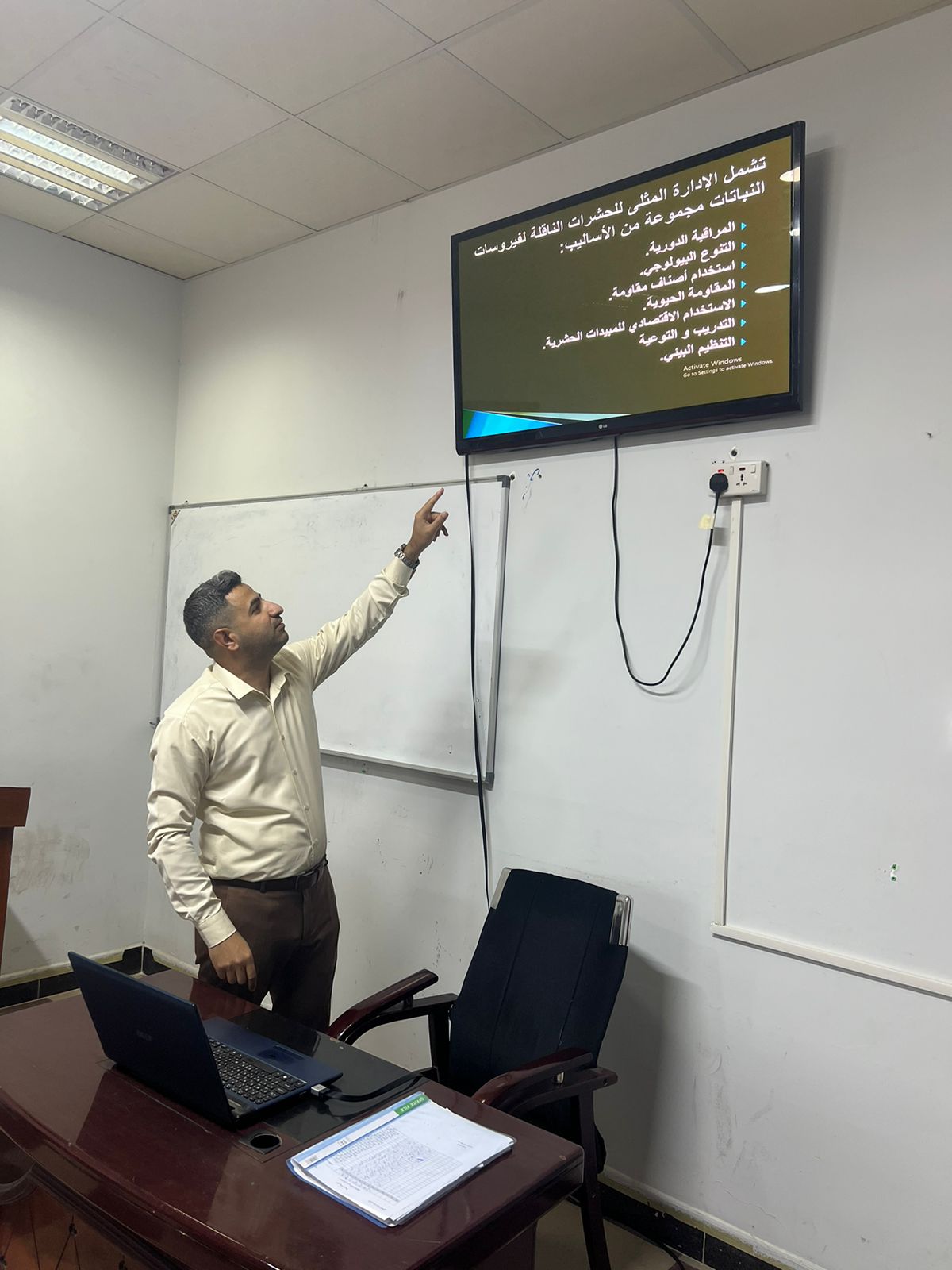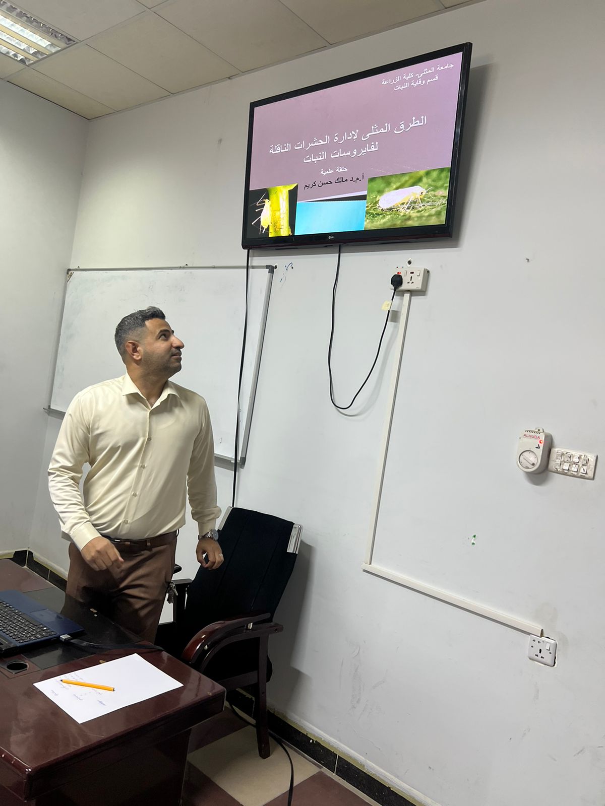 ضمن الخطة العلمية لقسم وقاية النبات للعام الدراسي ٢٠٢٣ – ٢٠٢٤ م تم إلقاء حلقة نقاشية بعنوان (الطرق المثلى لإدارة الحشرات الناقلة لفايروسات النبات) حاضر فيها الأستاذ المساعد الدكتور مالك حسن كريم وتناولت الحلقة اهم طرق إدارة الحشرات الناقلة لفايروسات النبات منها الطرق الحديثة و المبتكرة في الزراعة و طرق الكشف المبكر عنها وادارتها بصورة صحيحة والتقليل من استخدام المبيدات