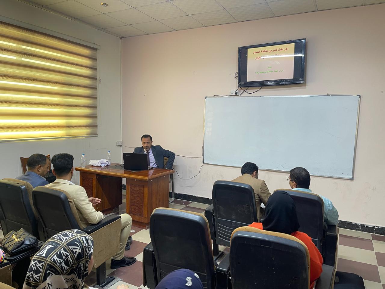 اقام قسم اللتصحر بتاريخ 2024/4/22 حلقة نقاشية بعنوان(نخيل التمر ودوره في مكافحة التصحر والمحافظة على التنوع الحيوي) ،حاضر فيها ا. م. د عماد عبد الكريم محمدرضا وهدفت إلى التعرف على دور نخيل التمر في مكافحة التصحر والمحافظة على التنوع الحيوي لما لهذه الشجرة من دور كبير في البيئة العراقي وخاصة في وسط وجنوب البلاد.