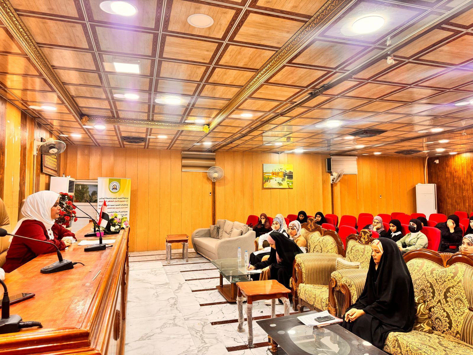 اقامة كلية الزراعة – جامعة المثنى ندوة توعوية حول الحشمة والأخلاق حضرها طالبات قسم المحاصيل الحقلية والموظفات حاضر بها د اسراء راهيود علا حسين علي احدى تدريسي كلية الزراعة .