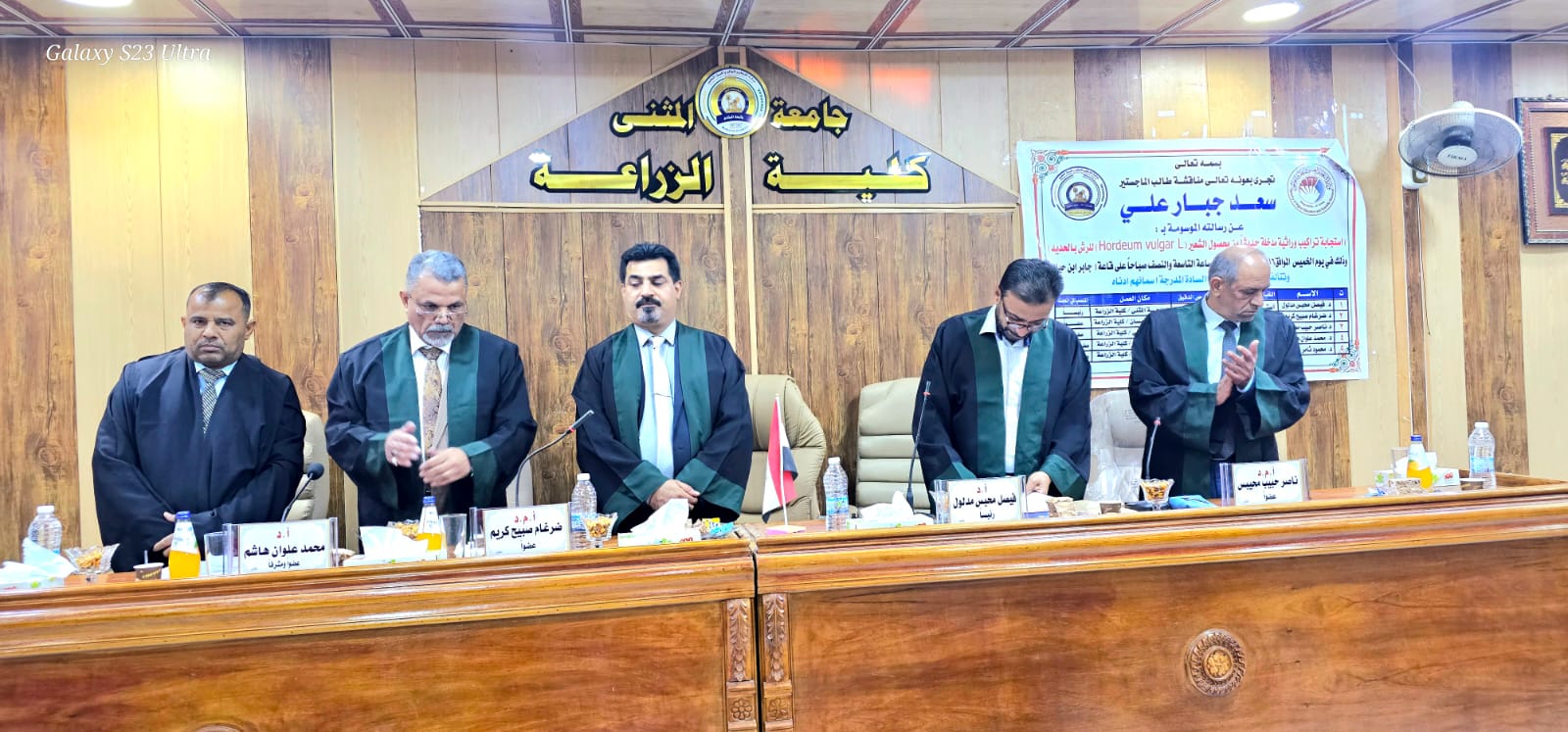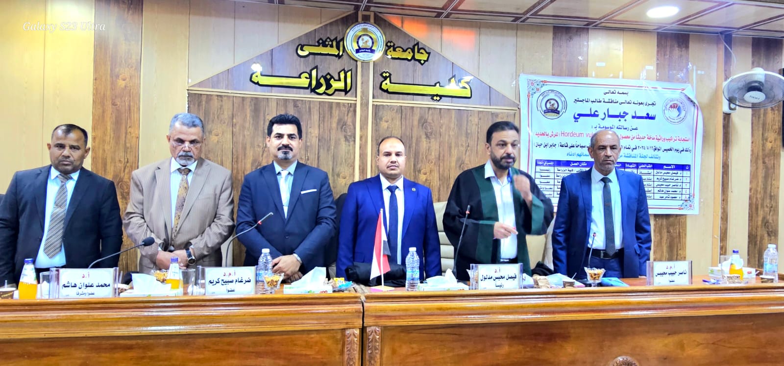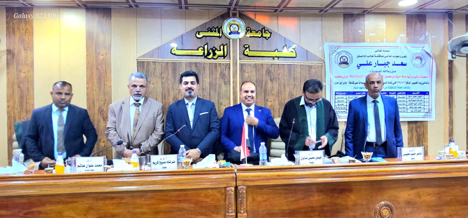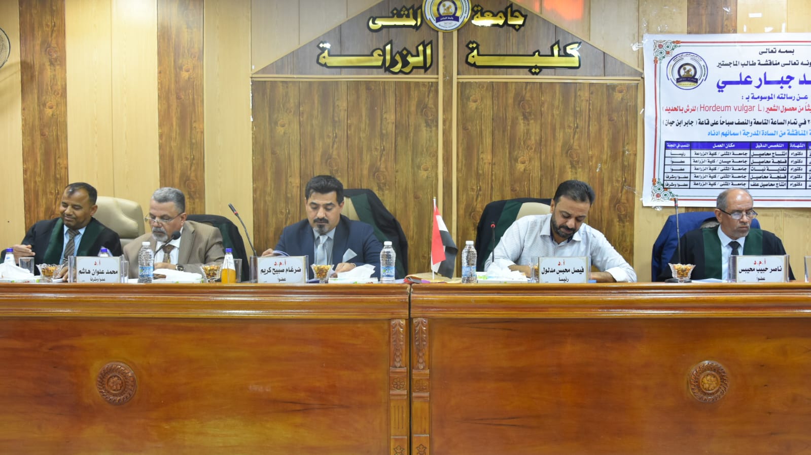 أجريت هذا اليوم الخميس الموافق 5/16/ 2024 وفي قاعة جابر بن حيان في كلية الزراعة – جامعة المثنى.. مناقشة علنية لرسالة طالب الماجستير ((سعد جبار علي )) في قسم المحاصيل الحقلية والموسومة (( استجابة تراكيب وراثية مدخلة حديثا من محصول الشعير)) الرسالة فالف مبروك للطالب واللجنة المشرفه