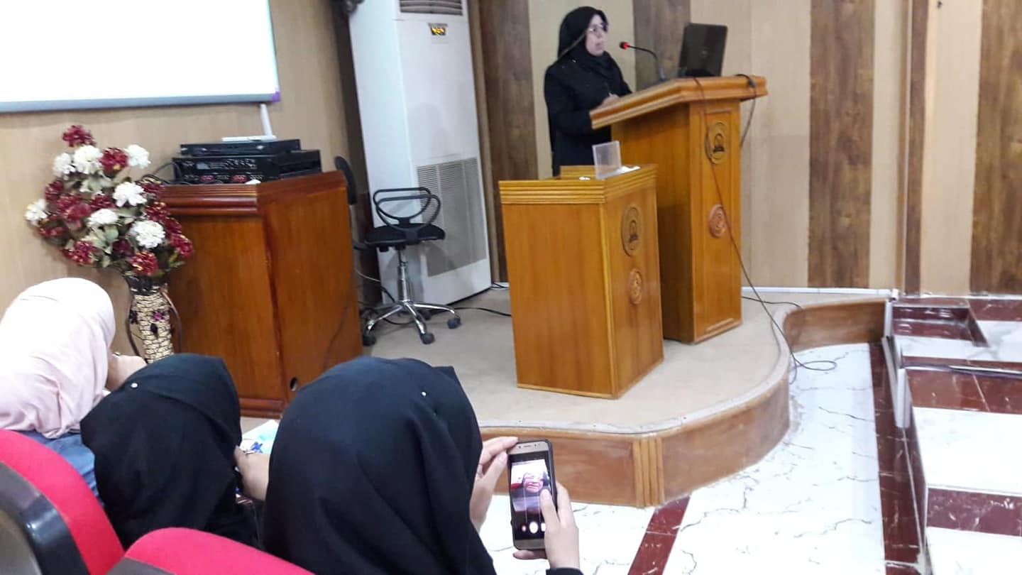 10/03/2018حلقات دراسية لطلبة الدراسات العليا في كلية الزراعة جامعة المثنى ضمن النشاط الفصلي لقسم علوم التربه والموارد المائيه ..القت طالبه الدراسات العليا اكتفاء نعيم جاسم حلقة دراسيه حول ملوثات التربة ومعالجتها حيويا وجرت على قاعة جابر بن حيان التابعه الى كلية الزراعة ..وبحضور رئيس قسم التربة الدكتور حنون ناهي كاظم والعديد من أساتذة القسم.