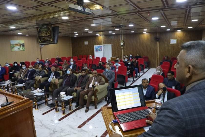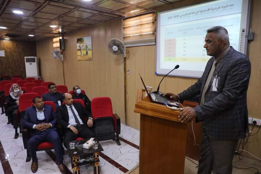 استعرض السيد العميد المحور الاول الخاص برؤية ورسالة واهداف الكلية فضلا عن جهود العمادة المبذولة خلال سنة كاملة على الصعيد العلمي والاداري والبحثي والخدمي والانساني، كما استعرض المعاون العلمي أ. م. د علي عبدالله اداء الكلية العلمي المتمثل بجانب البحث والتدريس والامتحانات للعام الدراسي 2019-2020 ومقارنتها مع بالعام الدراسي 2018-2019، وتناول المعاون الإداري المحور الاداري المتمثل بالهيكل التنظيمي والصيانة والاتفاقيات ومشروع المليون شجرة.