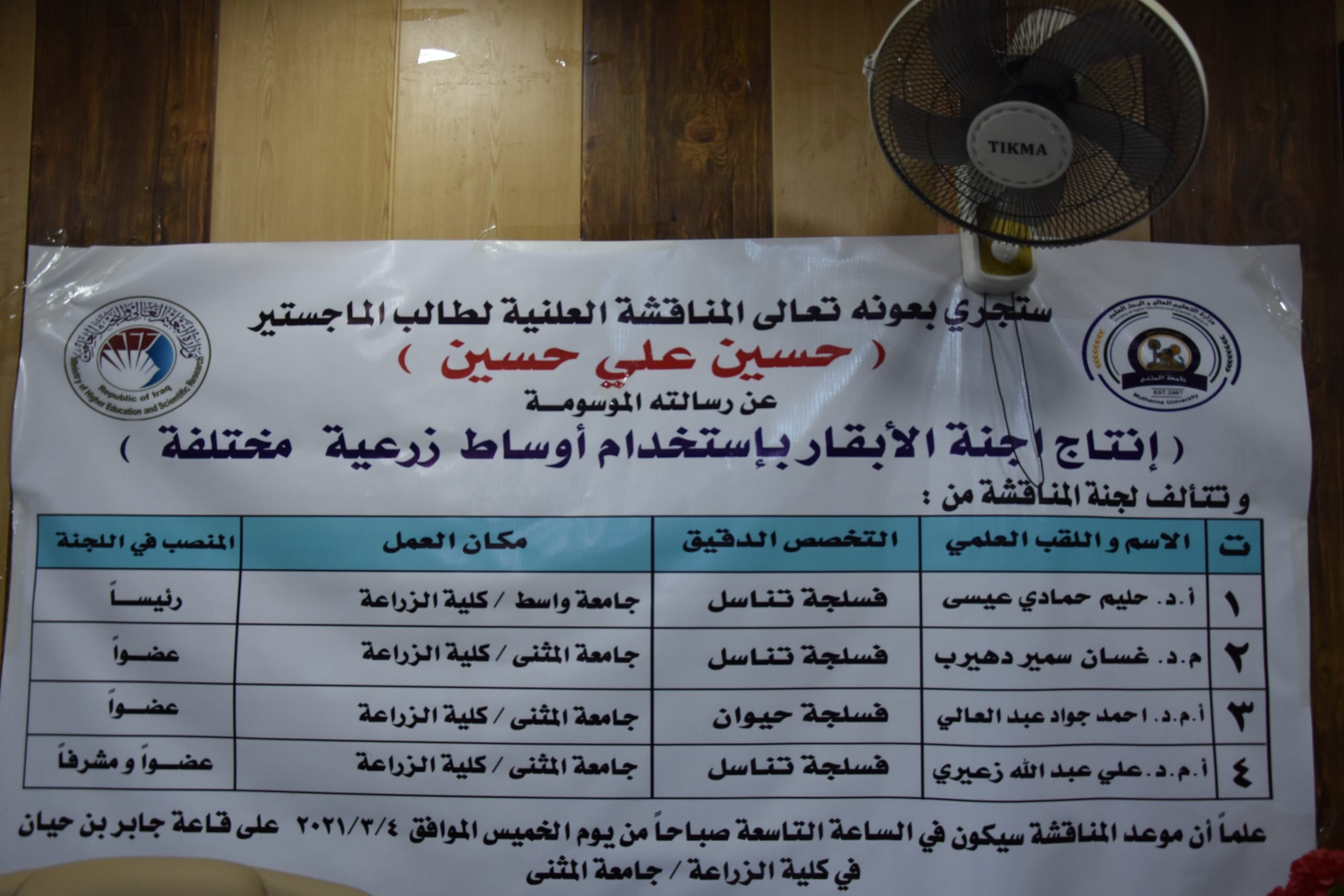 03/05/2021تمت مناقشة رسالة الماجستير الطالب ( حسين علي حسين ) الموسومة انتاج اجنة الابقار باستخدام اوساط زرغية مختلفة .