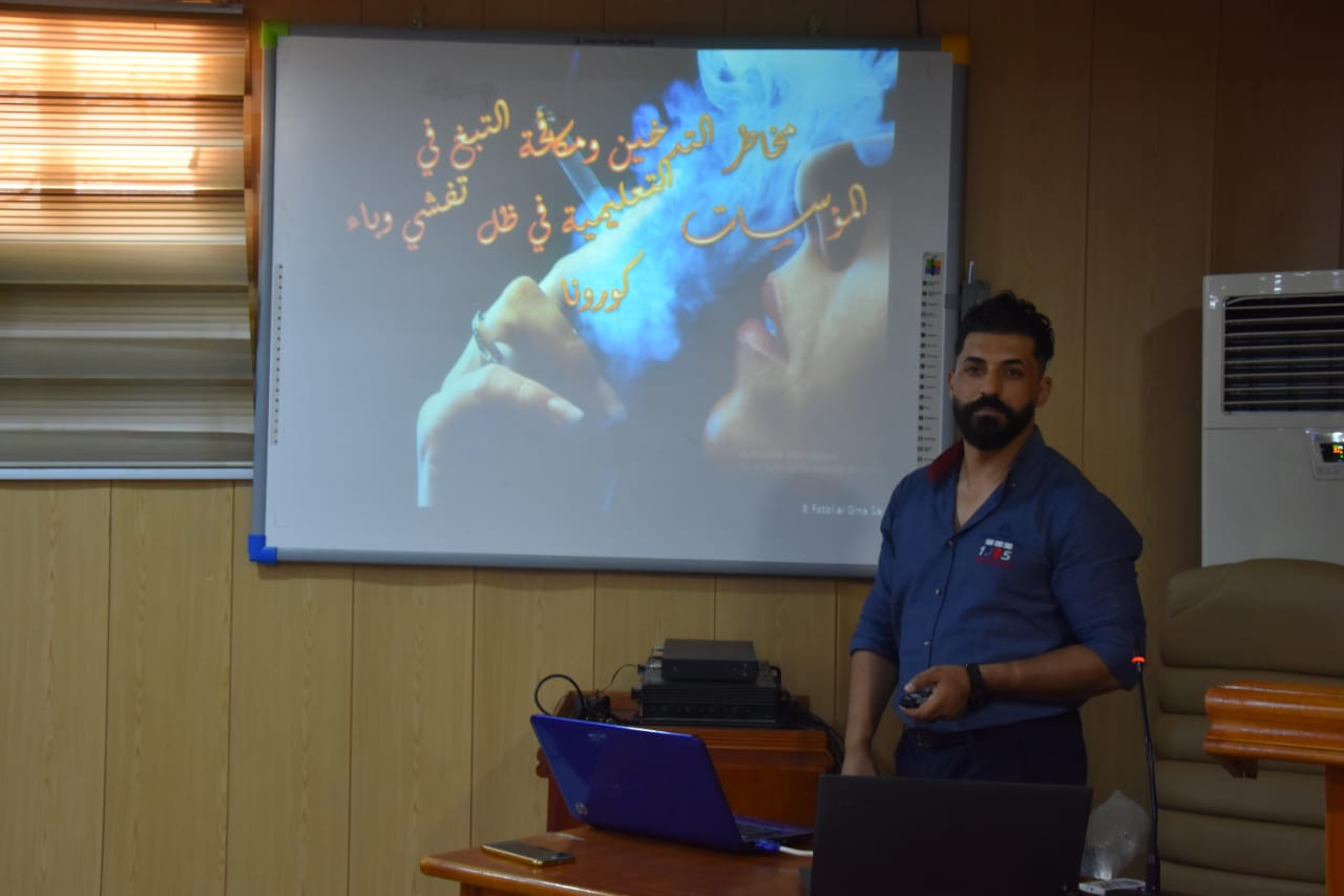 06/08/2021ضمن نشاط وحدة التعليم المستمر في كليتنا تم اقامة محاضرة حول الاثار السليبة للتدخين وعلاقتها بفايروس كورونا حاضر فيها السادة أ.م.د خالد عودة كشيش والدكتور محمد محسن من كلية التربية البدنية وعلوم الرياضة، تناولت المحاضرة الاثار السليبة للتدخين على الفرد والمجتمع وخصوصا خلال تفشي فيروس كورونا، والقيت المحاضرة على قاعة جابر بن حيان بحضور عدد من موظفي وتدريسيي الكلية.وحدة التعليم المستمر / كلية الزراعة