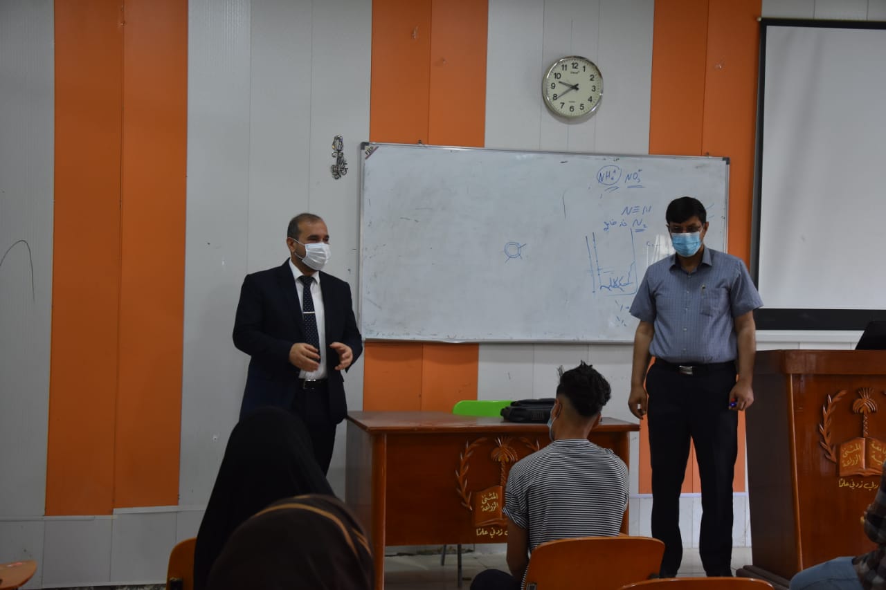 وتم اتخاذ الاجراءات الوقائية من توفير الكمامات والمعقمات في مداخل الكلية ورحب السيد العميد الاستاذ المساعد الدكتور حيدر حميد بلاو الكعبي بالطلبة اثناء لقائة معهم واكد على اهمية الالتزام بالاجراءات الوقائية والتباعد الاجتماعي حفاظا على سلامة ابنائنا الطلبة وعوائلهم الكريمة كما اكد على اهمية اخذ اللقاح واجراء الفحص المختبري وتقديم نسخه منه لاقسامهم العلمية .