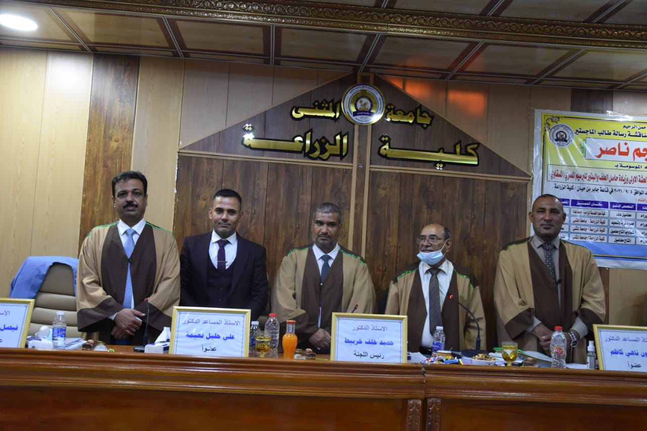 كلية الزراعة تناقش رسالة ماجستير للطالب حسن جاسم عبيد