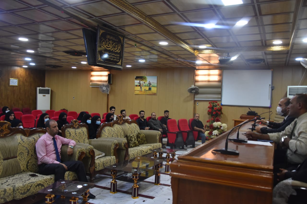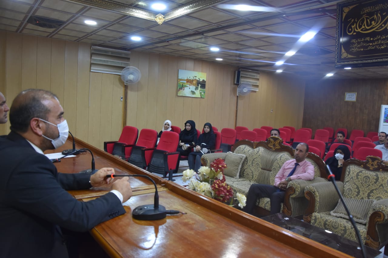 التقى السيد عميد كلية الزراعة جامعة المثنى للاستاذ المساعد الدكتور حيدر حميد بلاو الكعبي بطلبة الدراسات العليا في يومهم الاول لهذا العام الدراسي وتم في بداية اللقاء الترحيب والتهنئة بمناسبة قبولهم وبدء العام الدراسي متمنياً لهم النجاح والموفقية، واكد على ضرورة بذل قصارى جهودهم للتنمية معارفهم وصقل شخصيتهم العلمية كباحثين في اختصاصاتهم العلمية، كما اكد السيد العميد على الإلتزام بالاعراف الجامعية ليكونوا قدوة لزملائهم في الدراسة الاولية ووجهه بأهمية اتخاذ إلاجراءات الوقائية المطلوبة أثناء تواجدهم داخل الجامعة وفي ختام اللقاء جدد الترحيب بهم ودعاهم للمشاركة في حملة التشجير الثالثة التي تقيمها الكلية يوم غد الاثنين.