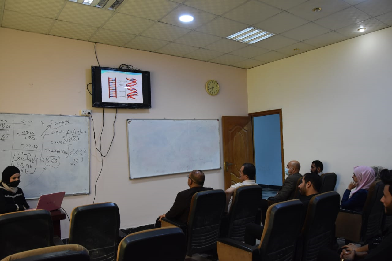 11/11/2021اقام قسم وقاية النبات في كلية الزراعة الساعة العاشرة صباح هذا اليوم الخميس الموافق الحادي عشر من تشرين الثاني حلقة نقاشية بعنوان التقنيات الحياتية حاضر فيها السيدة م.م علياء مؤيد قدوري بحضور مجموعة من تدريسيي الكلية