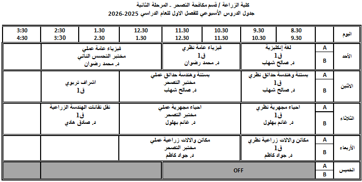 الوحدات الإدارية المرتبطة بمعاون العميد العلمي