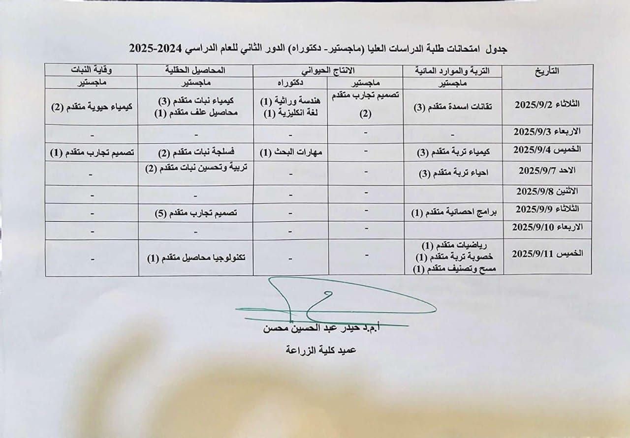 جدول الامتحانات النهائية اضغط للمشاهدة