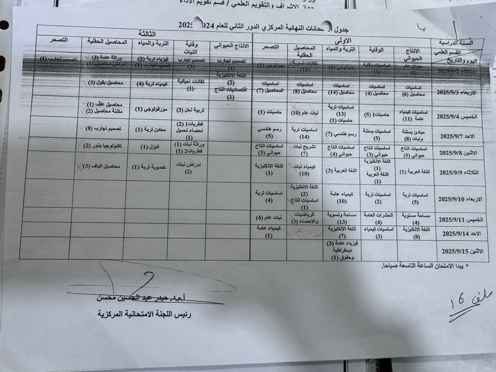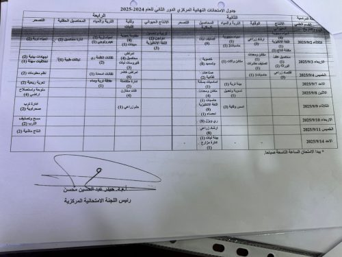 جدول الامتحانات النهائية – قسم المحاصيل 2024-2025